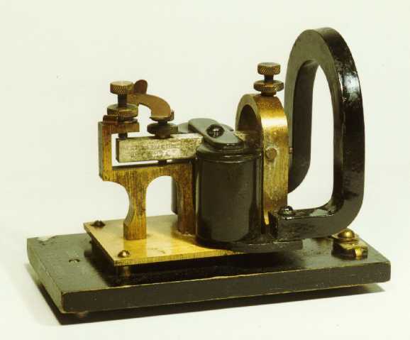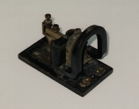 This is a sounder which has its solenoids magnetically biased by a permanent magnet. This causes it to respond to current flowing in one direction only, thus it is "polarized". This type of sounder was used in line test sets in large telegraph offices. It was not normally used for routine communications. This example is a Western Electric model 7A wound to 1000 ohms.