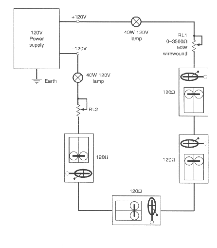 Each feed from the power source should be routed through a common 40- watt 120-volt incandescent lamp (a common light bulb) in order to provide some over-current and short-circuit protection for the circuit. These lamps also provide some isolation so that the keying action of one circuit will not have any effect on other circuits 'taking battery' from the same voltage supply.