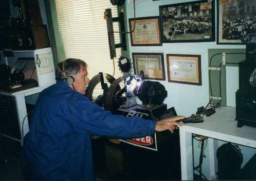 Bruce Kelley operating the big spark transmitter in the AWA Museum during the 1996 conference.